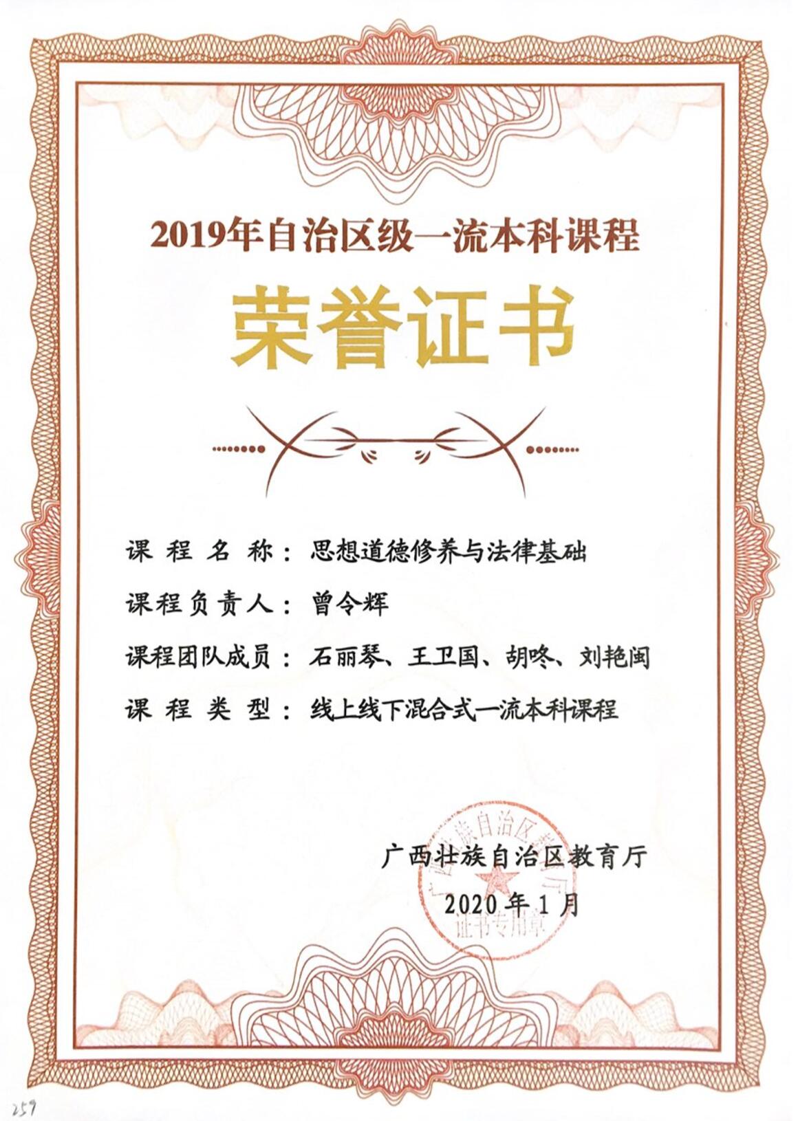 南宁师范大学马克思主义学院曾令辉教授主持的《思想道德修养与法律基础》课获2019年自治区级线上线下混合式一流本科课程,团队成员有石丽琴、王卫国、胡咚、刘艳闽。 马克思主义学院一直以来高度重视线上线下混合式一流本科课程的建设,希望大学生通过课程的学习,引导和帮助学生形成高尚的理想信念,养成良好的道德品质和法律素质,树立正确的世界观、价值观、人生观、道德观和法治观。