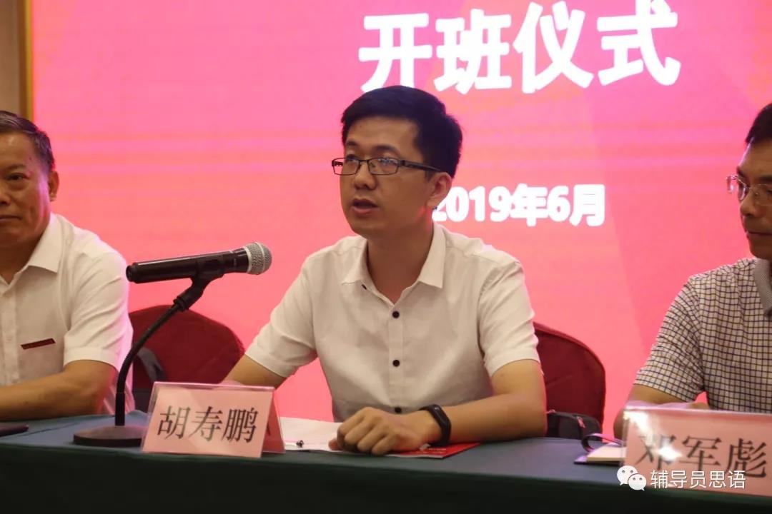 自治区党委教育工委宣传部副部长、自治区教育厅思政处副处长胡寿鹏在开班仪式上指出,自治区党委教育工委、教育厅历来重视辅导员队伍建设,并把辅导员队伍建设作为人才培养工作的基础工程和重要保障长抓不懈。他提到,广西对辅导员队伍的培训力度不断加大,采取岗前培训、骨干培训、高级研修、跟班学习和学历教育等形式,年均培训辅导员300多人次,形成了教育部示范培训、教育厅骨干培训、学校日常培训的三级培训体系。辅导员选拔、日常管理和考核评价等管理机制逐步规范,辅导员队伍的政治待遇和福利待遇逐步改善。他对本次培训班学员提出三点建议,一是要明确学习目的,充分认识本次培训班的重要意义;二是要理论联系实际、学以致用,创造性地开展学习;三是要严肃学习纪律,确保培训质量和学习效果不打折扣。