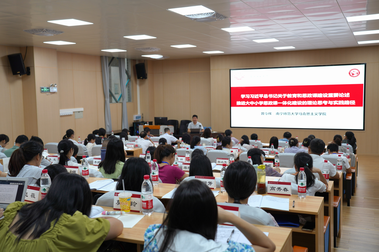 开班仪式后,曾院长作了题为“学习习近平总书记关于教育和思政课建设重要论述”的专题报告。曾院长立足于建设教育强国对教师的新要求新任务新使命,全面学习和阐释了习近平总书记关于教育和思政课建设重要论述的重要意义、本质内容和根本遵循。曾院长强调,习近平总书记关于教育重要论述是推进教育现代化和建设教育强国的基本遵循。习近平总书记关于思政课建设的重要论述是思政课教师推进“大思政课”“思政课一体化”建设的行动指南。思政课教师要深刻领悟习近平总书记关于教育和思政课建设重要论述的精神实质,全面贯彻思政课是落实立德树人根本任务关键课程的总体要求,坚持深化思政课教育教学改革创新,协同推进大中小学思政课一体化建设,更加注重育人的整体性、连贯性和协调性。