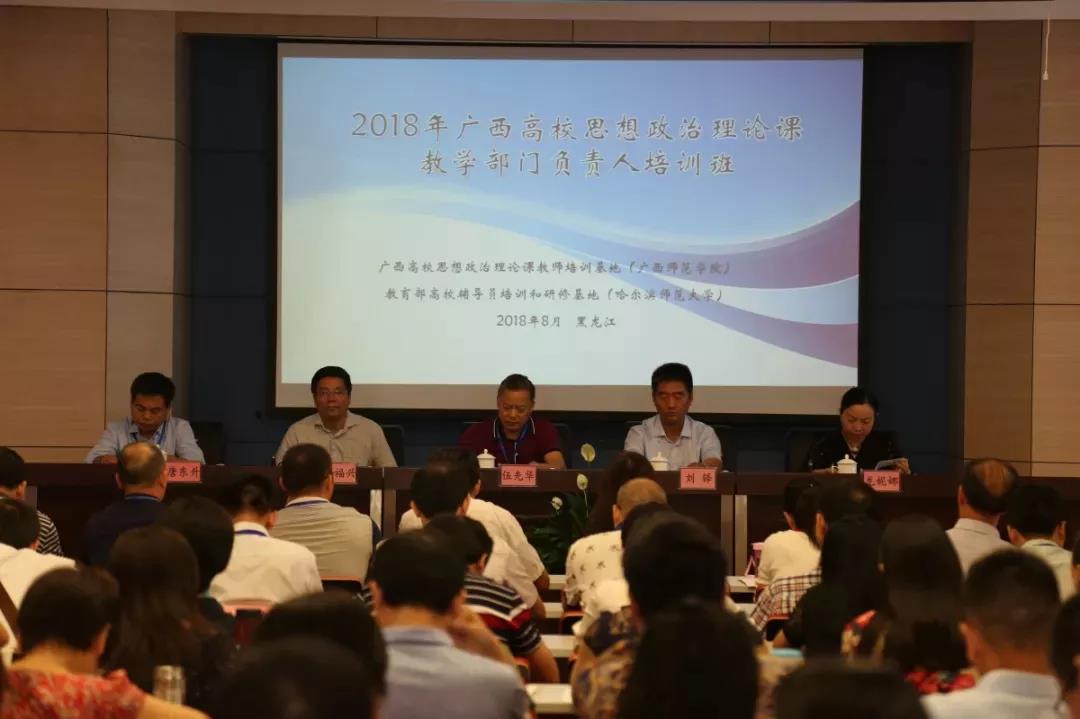 8月22日,广西高校思想政治理论课教学部门负责人培训班在黑龙江哈尔滨举行开班仪式。广西师范学院党委副书记伍先华,黑龙江省高校工委宣传部部长、教育厅思政处处长刘铎出席开班仪式并分别致辞和发表讲话,开班仪式由广西师范学院党委常委、宣传部部长龙妮娜主持。教育部高校辅导员培训和研修基地(哈尔滨师范大学)副主任王福兴、广西师范学院党委常委、党校办主任唐东升参加了开班仪式。